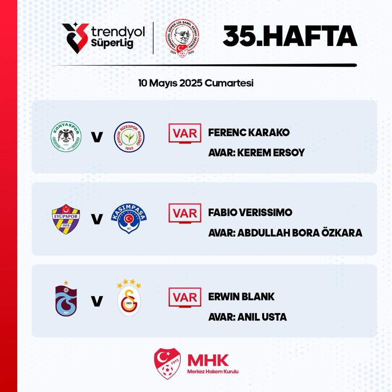Trabzonspor-Galatasaray maçının VAR hakemi belli oldu.MHK'den yapılan açıklamaya göre; dev karşılaşmada VAR hakemi olarak Hollandalı Erwin Blank görev yapacak.<b>Günün diğer müsabakalarındaki görevlendirmeler ise şöyle:</b><img class='rich-text-photo' src='https://imgs.stargazete.com/imgsdisk/2025/05/10/gqk300dwsaey5hy-10052025d88381f8.jpg'/>
