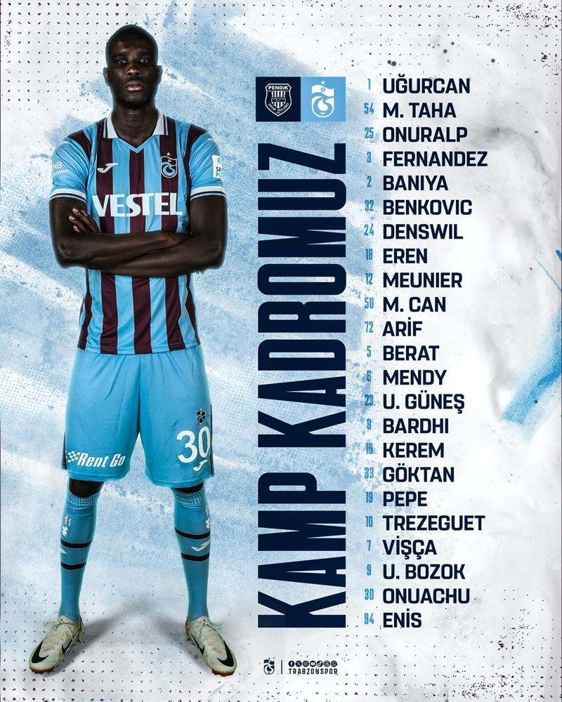 Trabzonspor'un Pendikspor ile oyanayacağı maçın kamp kadrosu belli oldu.