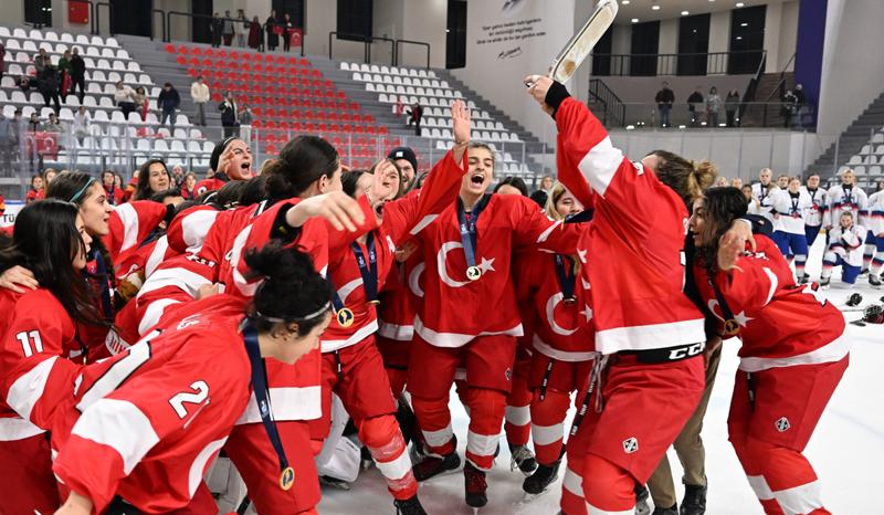 İstanbul'da düzenlenen Kadınlar 18 Yaş Altı Buz Hokeyi Dünya Şampiyonası 2. Klasman B Grubu'ndaki 4. maçında İzlanda'yı 2-0 yenen Türkiye, altın madalya elde etti.