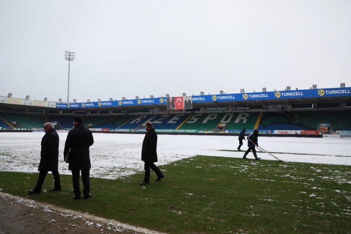 Rize'de kar yağışı aralıklarla etkisini sürdürürken, mücadelenin hakemi Yaşar Kemal Uğurlu'nun maçtan 2 saat önce statta yapacağı incelemenin ardından son kararın ilan edileceği öğrenildi.