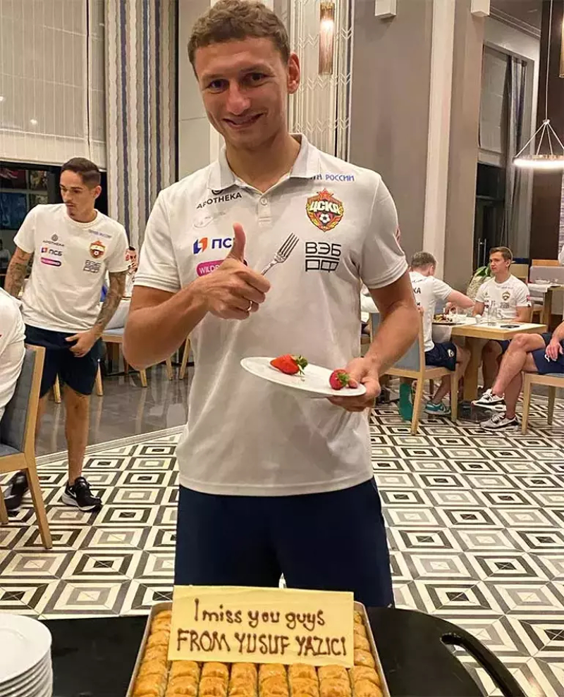 Yusuf Yazıcı, Antalya'da kamp yapan CSKA Moskova'daki takım arkadaşlarına baklava ikramında bulundu.