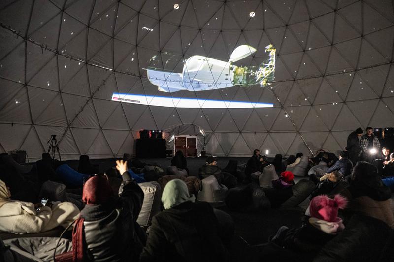 Türkiye'nin insanlı ilk uzay görevini gerçekleştiren Gezeravcı'yı taşıyan uzay aracının Uluslararası Uzay İstasyonu'na kenetlenmesi, Sanayi ve Teknoloji Bakanlığı tarafından kurulan Taksim Meydanı'ndaki "dome çadır" adlı, dev kubbeli planetaryumdan vatandaşlar tarafından takip edildi.