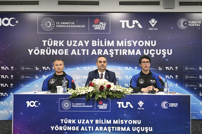 Kacır, Türkiye'nin astronotları Alper Gezeravcı ve Atasever ile Bakanlık'ta, "Türk Uzay Bilim Misyonu Yörünge Altı Araştırma Uçuşu" konulu basın toplantısı düzenledi.