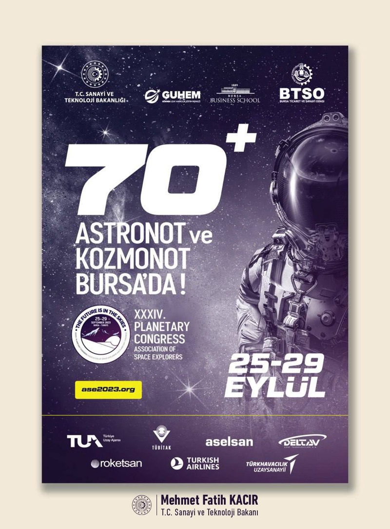 Etkinlik kapsamında GUHEM ve Bursa Business School organizasyonuyla kente gelecek 70'ten fazla astronot 5 gün boyunca birbirinden önemli etkinliklerde yer alacak. 25-29 Eylül'de gerçekleştirilecek kongrede uzayda yaptıkları çalışmalarla adını duyurmuş astronot ve kozmonotlar uzay farkındalığını artırmak için çalışmalarda bulunacaklar.