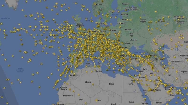 Türk Hava Yolları ve Sunexpress gibi Türkiye'de yer alan firmaların da aralarında bulunduğu firmalarla birlikte United Airlines ve Delta Airlines'ın da bulunduğu üç ABD havayolu şirketi ve Avrupa'daki birçok şirketin uçuşlarında aksamalar meydana geldi. Hava trafiği yoğunluğu haritasında uçakların oluşturduğu yoğunluk görüntülendi.