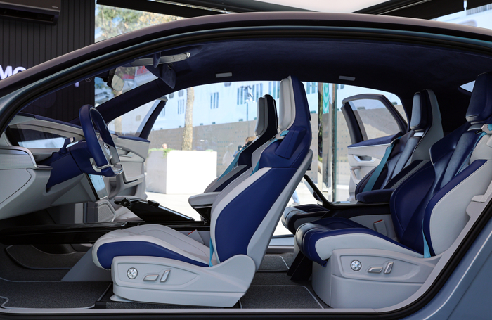 Ön koltuklarda açık renk deri kullanılırken, arka koltuklarda koyu renk tercihi göze çarpıyor. Emniyet kemerlerinde ise özgünlüğü vurgulamak için açık mavi renk tercihi dikkat çekiyor.