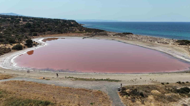 Sıcaklık ve tuzluluğun artmasından dolayı 'dunaliella salina' (su yosunları) adlı mikroskobik bitkisel canlının fazla üremesi nedeniyle ortaya çıkan pembe ve kırmızıya yakın tonlar, göle farklı bir görünüm kazandırıyor. Özellikle Ağustos ve Eylül aylarında pembeye yakın tonlara bürünen gölde, Kasım ve Aralık aylarında bazı günlerde yaşanan ısı değişikliğiyle de aynı renk oluşuyor. Kalp şeklindeki pembe gölün yapılacak araştırma ve inceleme sonrası turizme kazandırılması planlanıyor. Pembe göl, Troya, Assos, Alexandria Troas, Apollon Smintheus antik kentlerinin ziyaretçi sayılarına olumlu katkısının olacağı varsayıldığı gibi, yeni turizm bölgeleri olarak belirlenen Kadırga Koyu, Sivrice, Sokak Ağzı, Babakale, Gürpınar ve Tuzla açısından da önemli rol oynaması bekleniyor.