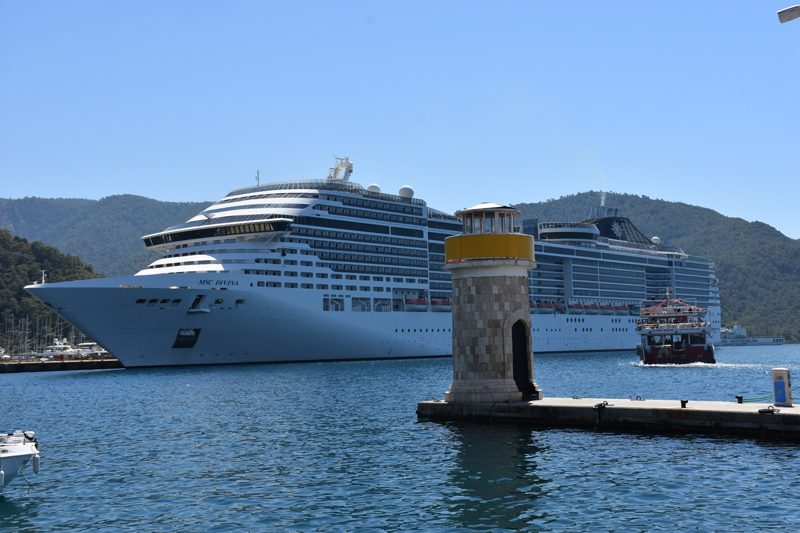 İzmir Limanı'ndan gelen ve Marmaris Cruise Port Limanı'nın büyük iskelesine yanaştırılan 333 metre uzunluğundaki gemide, çoğu İtalyan 4 bin 300 yolcu ve 1800 personel bulunduğu belirtildi.