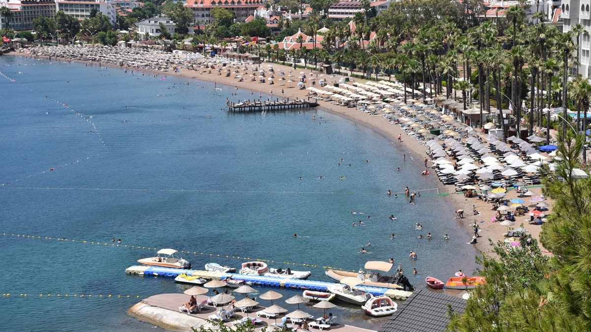 Marmaris'in Uzunyalı, İçmeler ve Turunç plajları ile Orhaniye Mahallesi'ndeki Kız Kumu Plajı'nda yoğunluk yaşanıyor.