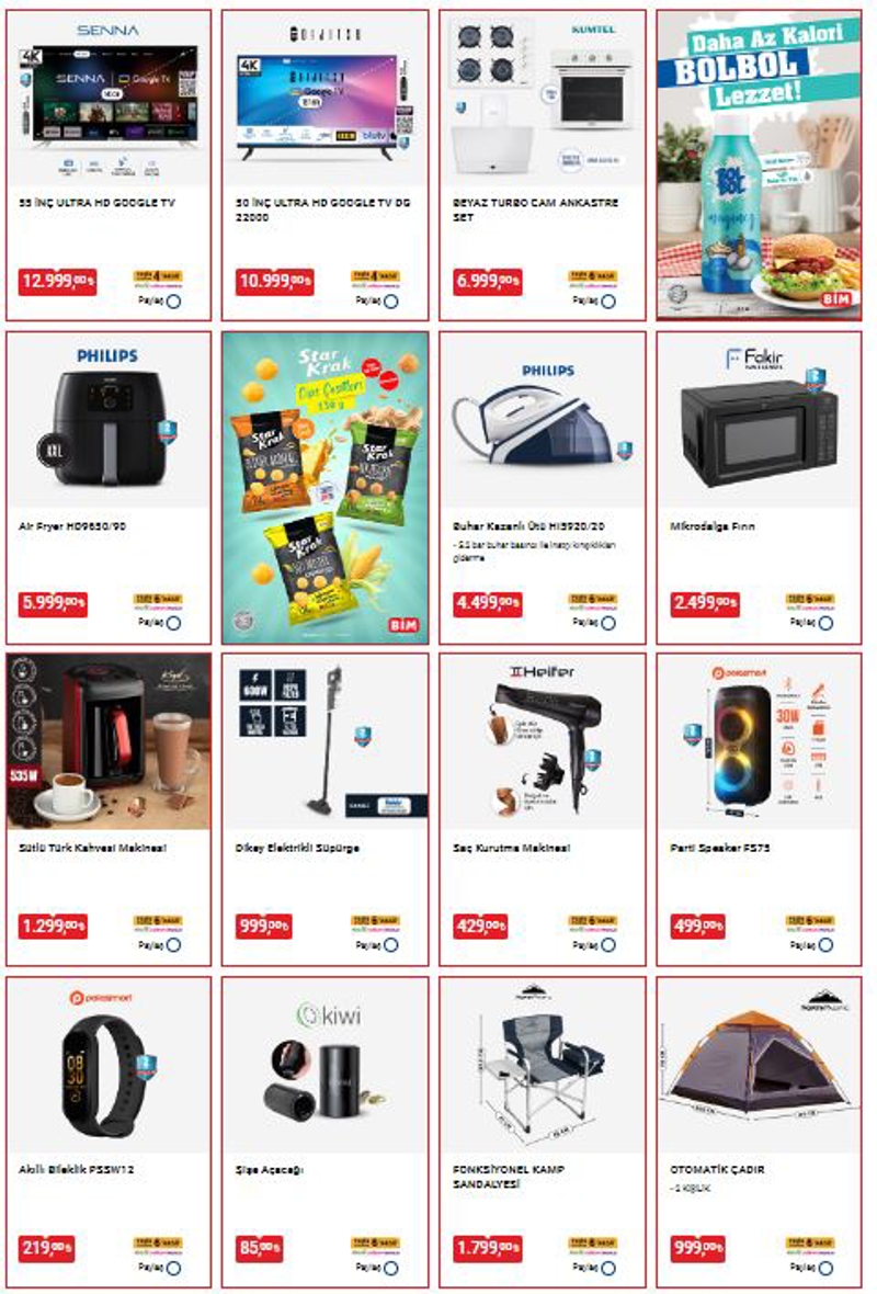 BİM 21 Haziran Cuma kataloğu yoğun ilgi görüyor. Bu hafta da dopdolu olan katalogta her hafta olduğu gibi en çok ihtiyaç duyulan elektronik ev aletleri, mutfak araç gereçleri, tekstil ürünleri satışa sunulacak. Ayrıca kamp ve piknik malzemeleri de uygun fiyatlarla raflardaki yerini alacak. Fonksiyonel Kamp Sandalyesi 1.799 TL, Renkli Pipetli Termos 449 TL, Corby Drones CX027 Smart Drone 1.299 TL'den satışa sunulacak. İşte 21 Haziran BİM aktüel ürünler kataloğunun tamamı...