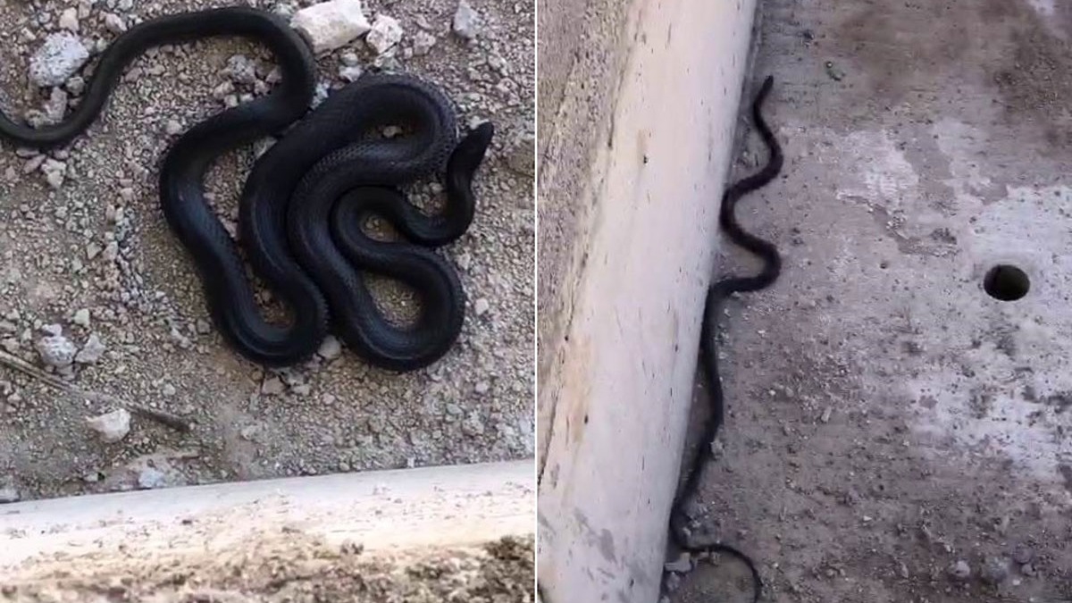 Gezin bölgesinde bulunan inşaat alanında çalışan işçiler, binanın alt tarafında kıvrılmış vaziyette bekleyen 3 metreyi aşkın boyuyla siyah bir yılan gördü. İlk başlarda hareketsiz duran yılanın, canlı olup olmadığını, üzerine kum dökerek öğrenmeye çalışan işçiler, devasa yılanın hareket etmesi ile paniğe kapıldı. Bulunduğu yerden süzülen yılan daha sonra gözden kayboldu.