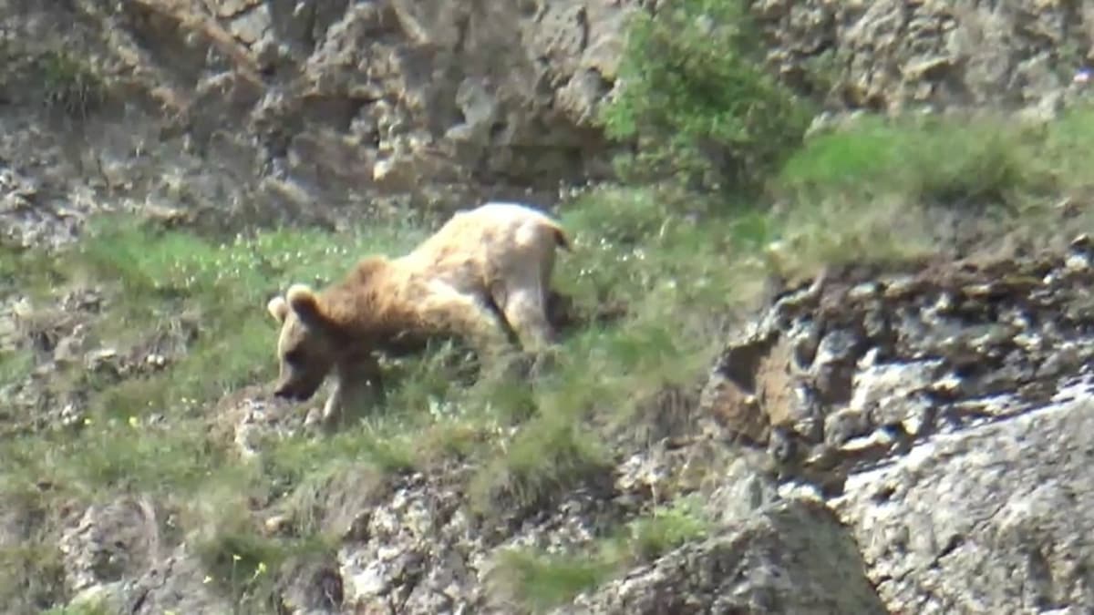 İspir’de Çoruh Vadisinde dağdan inen ayı, Çoruh’tan su içtikten sonra kayalıklara doğru tırmandı. Cep telefonu ile görüntülenen ayının rahat tavırları dikkat çekti.