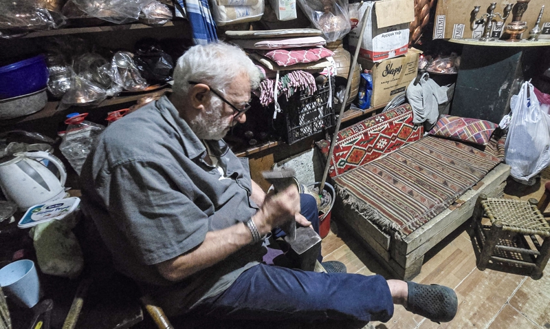 Tokat'ta tarihi Taşhan içerisinde yarım asırdır bakır işleme ve kalay işiyle uğraşan Mehmet Küçük, babasıyla amcalarının yaptığı aile mesleğini tüm zorluklarına rağmen devam ettiriyor.