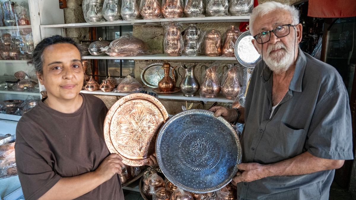 Çırak yoksa eşi var! Bakırcı ustası mesleği hanımına öğretti