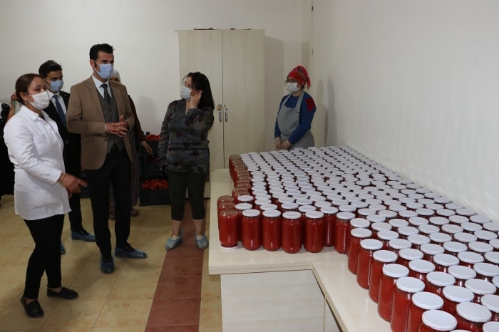 Beşikçi, "Kaymakamlık ve belediye ekiplerimiz sayesinde kadınlarımıza konserve domates, turşu ve makarna ihtiyaçlarını karşılayabilecekleri, aynı zamanda bundan ekonomik bir fayda sağlayabilecekleri konseptte program başlattık. Ham maddeleri belediye ve kaymakamlığımız sağlıyor. Kadınlarımız da burada ürettikleri ürünleri kendi kullanımlarına, komşularına, muhtaç, yaşlı ve kimsesiz vatandaşlarımıza ulaştırıyor." diye konuştu.