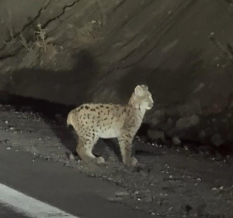 Erzincan - İliç karayolunda nesli tehdit altında olduğu için Dünya Doğa ve Doğal Kaynakları Koruma Birliği (IUCN) kırmızı listesinde yer alan yavru vaşak görüntülendi.