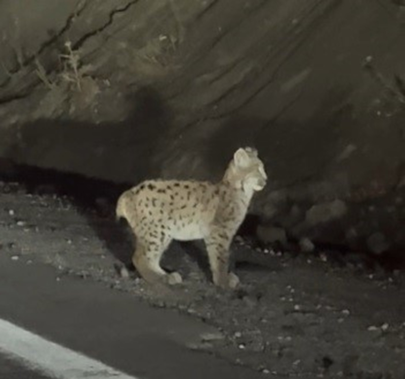 Araç sürücüsü gece saatlerinde yolda seyir halindeyken karayolu üzerinde bulunan yavru vaşağı fark etti. Sürücü bu anları bir süre cep telefonuyla görüntüledi. Vaşak daha sonra yoldan çıkarak arazide kendini kaybettirdi.