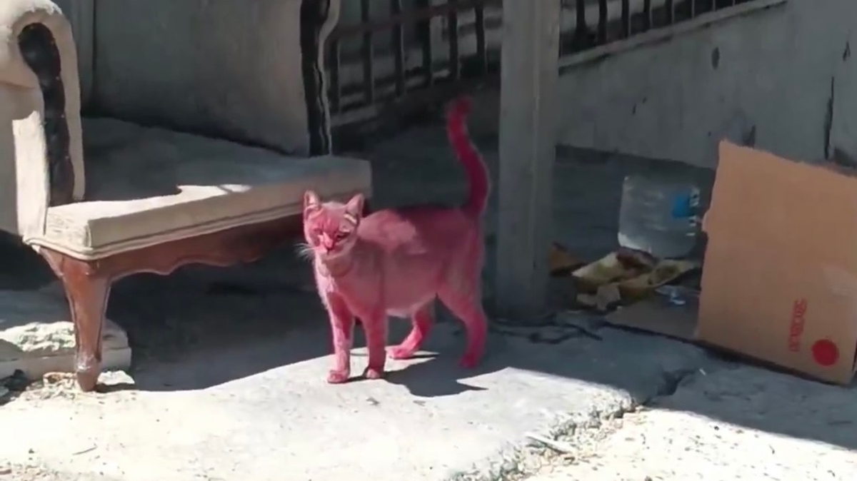 Olay, dün Esenyurt Atatürk Mahallesi'nde yaşandı. Bir sokak kedisi, kimliği belirsiz kişilerce pembeye boyayarak sokağa salındı. Yaşanan olayın ardından sokaklarda gezen kedi, gören vatandaşlarda şaşkınlığa neden oldu. Mahallede gezindiği anlar ise çevredeki vatandaşların cep telefonu kamerasına yansıdı.