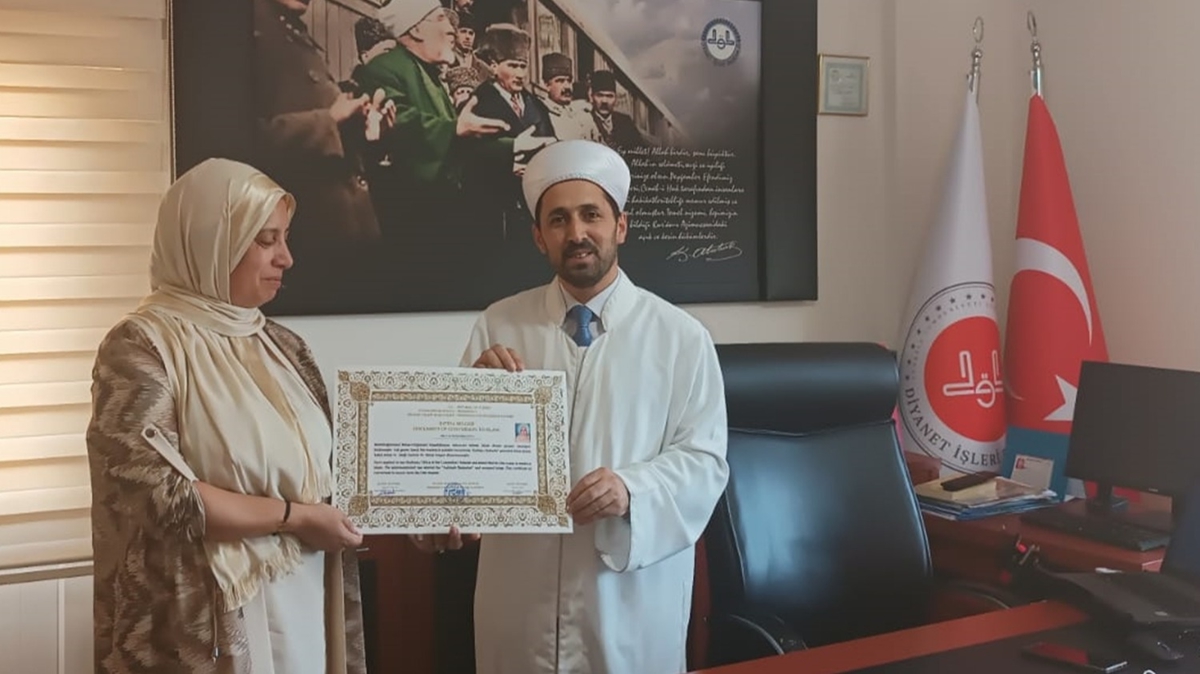 Kur'an-ı Kerim tilavetiyle başlayan törende, İlçe Müftüsü Mehmet Salih Geç, Dzhamazova'ya İslam hakkında bilgi verdi.