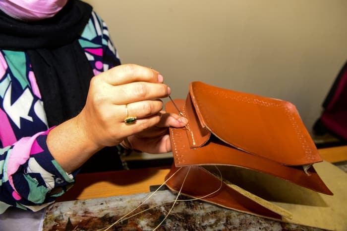 Bayrak, deri üzerine geleneksel yöntemlerle işlemelerin yapılışını kadınlara öğrettiklerini belirterek geleneksel el sanatlarını yaşatmayı hedeflediklerini dile getirdi.