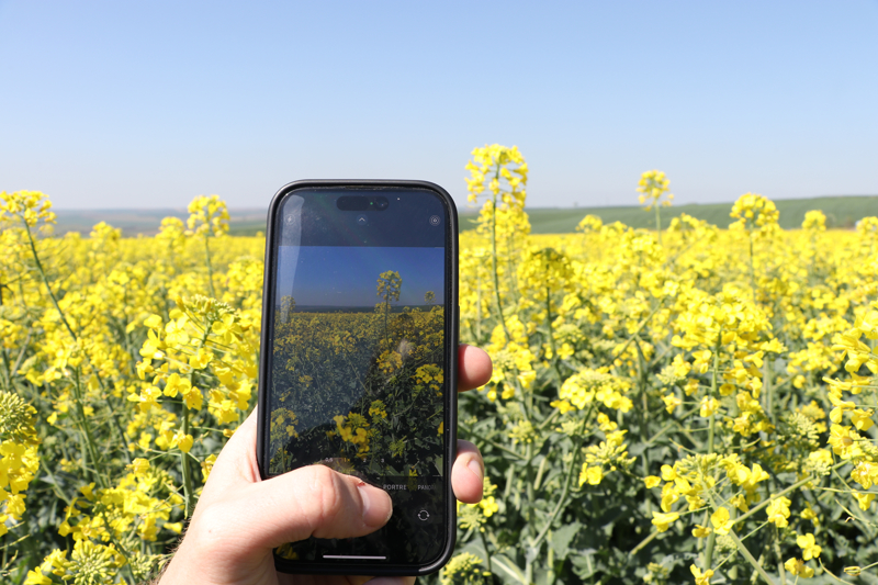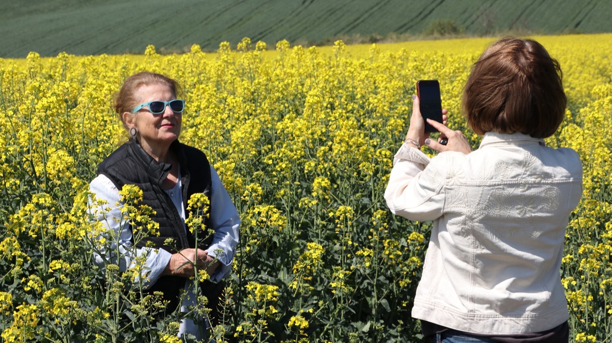 Kanola tarlasında güzel bir fotoğraf karesi ile anı ölümsüzleştirdiklerini dile getiren Yörükoğlu, bu sarı görüntünün benzersiz bir güzelliğe sahip olduğunu kaydetti.