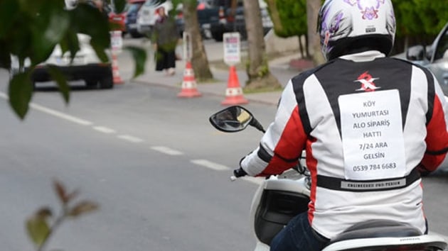 "Herkes duvara asar, apartman girişlerine asar, ben bunları yaparsam benim için reklam olmaz. Benim herkesten bir adım önde olmam lazım, o yüzden bu fikir aklıma geldi ve ilanı sırtıma yapıştırdım. Trafikte çok da ilgi gördüm, fotoğrafımı çeken insanları gördüm. Farklı olduğu için insanlar bakakalıyor. 7-24 mobil yumurta servisi, ara gelsin. Mobil hat oluyor, kuryeler ve yemek firmalar oluyor, biz de ‘mobil köylüyüz’, ara doğal köy yumurtası ayağına kadar gelsin."