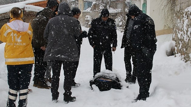 Kızılca Mahallesi İbre Sokak'ta kar altında bir kişinin hareketsiz yattığını gören vatandaşlar, durumu polis ve sağlık ekiplerine bildirdi.