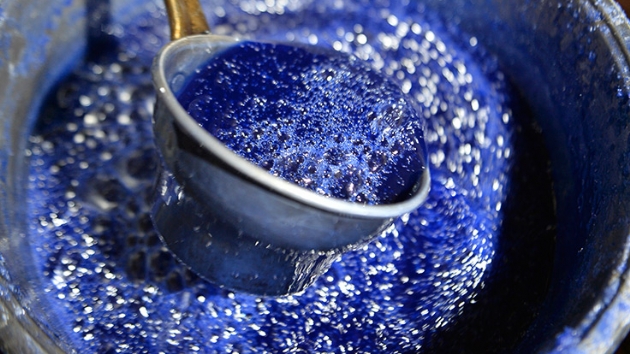 Dağlık alanda yetişen bademden şeker üretimi yaptıklarını vurgulayan Yertüm, badem şekerinin mavi rengini Lahor ağacının kökünden aldığına işaret ederek, "Ama rengi kaldıkça beyazlaşıyor. Eğer boya olsa her zaman mavi kalır." dedi.