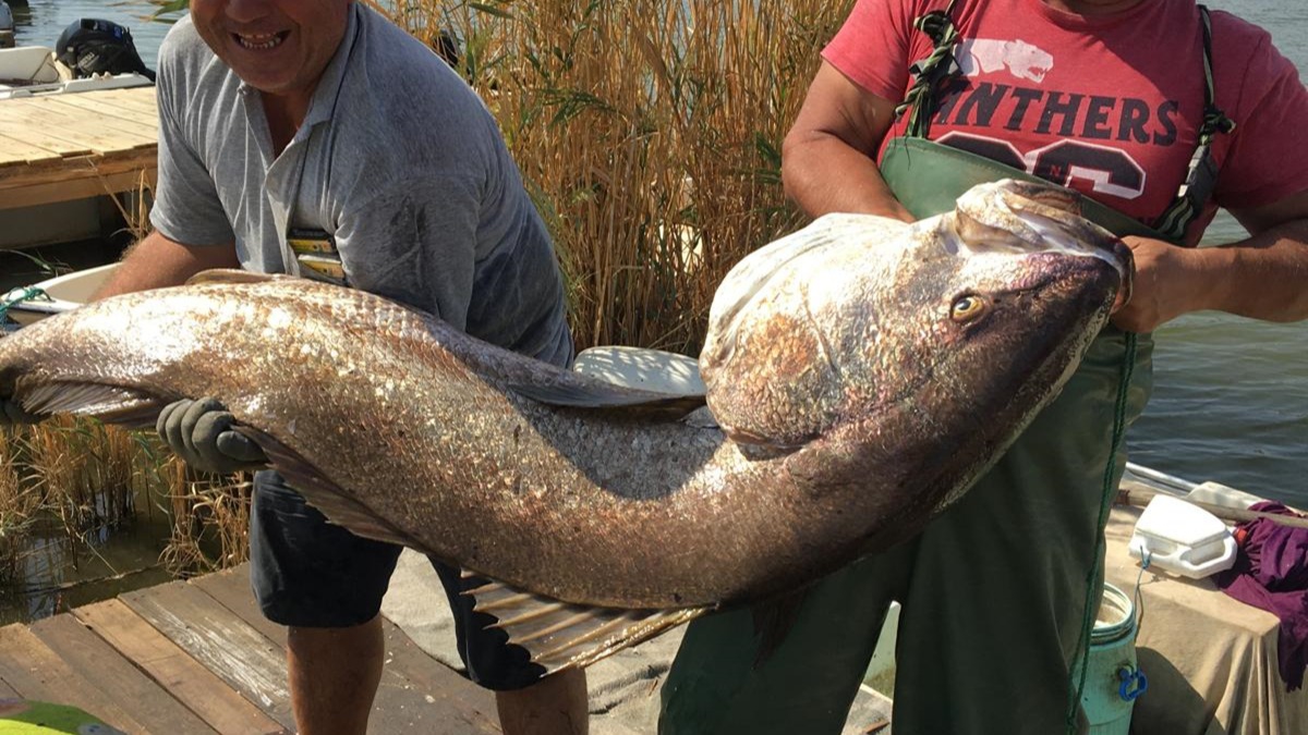 Balıkçılar bir süre sonra ağa takılan 41 kilogramlık granyöz balığını kıyıya çıkardı.