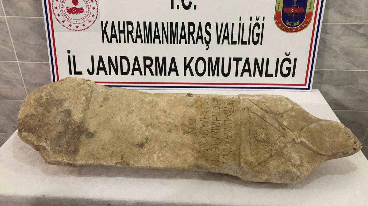 İl Jandarma Komutanlığı ekipleri, H.D.'nin elinde tarihi eser olduğu ve satmak için Kayseri'ye götüreceği bilgisine ulaştı. Harekete geçen ekipler, H.D.'yi Göksun'un Mahmutbey Mahallesi'nde yakaladı. Şüphelinin otomobilinde yapılan aramada Roma dönemine ait olduğu değerlendirilen mezar steli ele geçirildi. H.D., ekipler tarafından gözaltına alınarak İlçe Jandarma Komutanlığı'na götürüldü. 119 santim uzunluğunda, 30 santim genişliğinde olan mezar stelinin ise işlemlerin ardından Müze Müdürlüğü'ne teslim edileceği belirtildi.