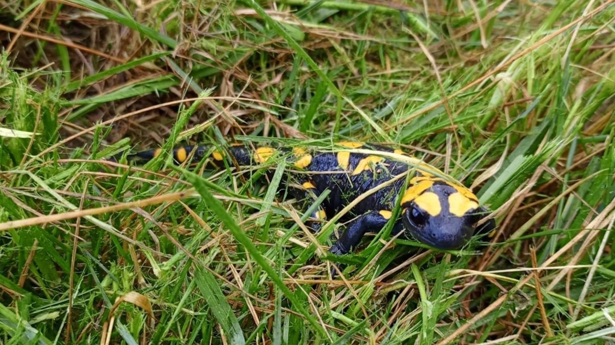 Soğukoluk Mahallesi'nde kırsal alanda bir kişi otların üzerinde korumada öncelikli lekeli semendere rastladı.Nesli tehlike altındaki semender, bir süre sonra gözden kayboldu.<img class='rich-text-photo' src='https://imgscdn.stargazete.com/imgsdisk/2024/05/04/34457804.jpg'/>