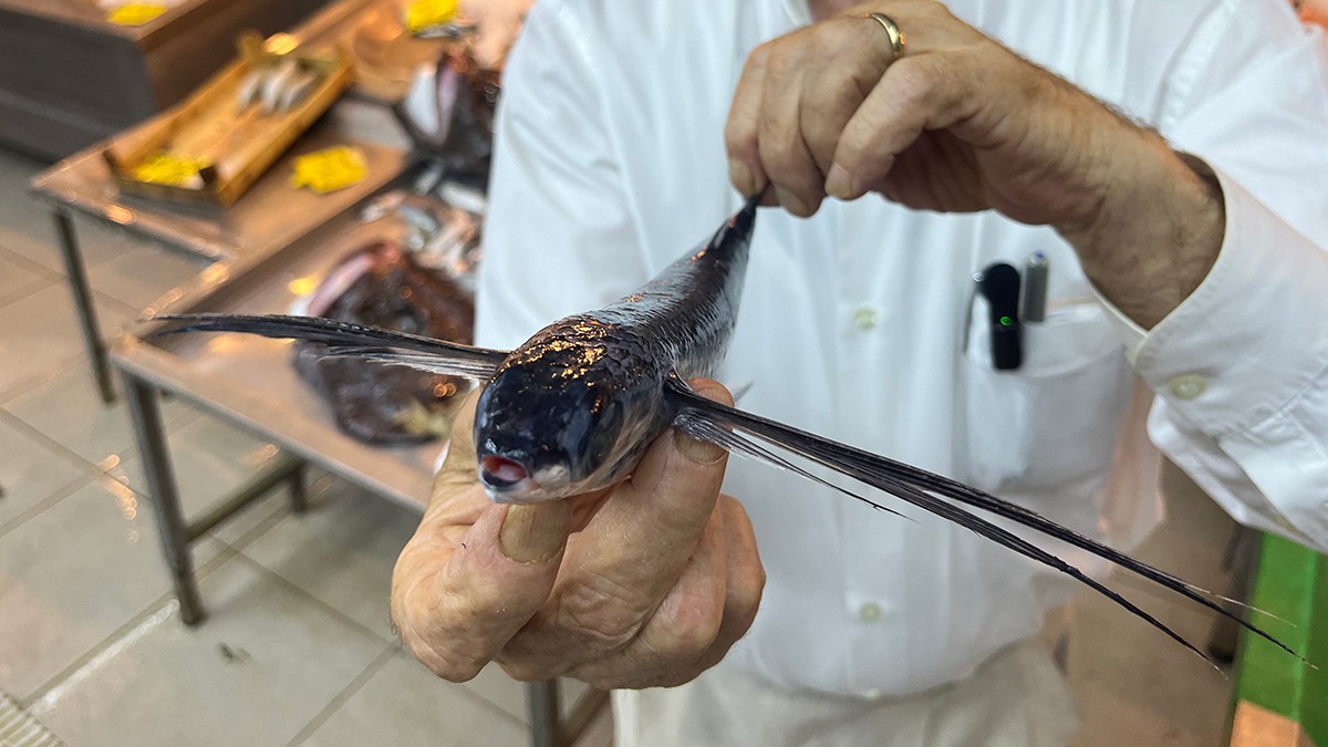 Uçan balığını ilk kez görenler balığı inceledi. Balık hakkında bilgi de alan vatandaşlar şaşkınlığını gizleyemedi.