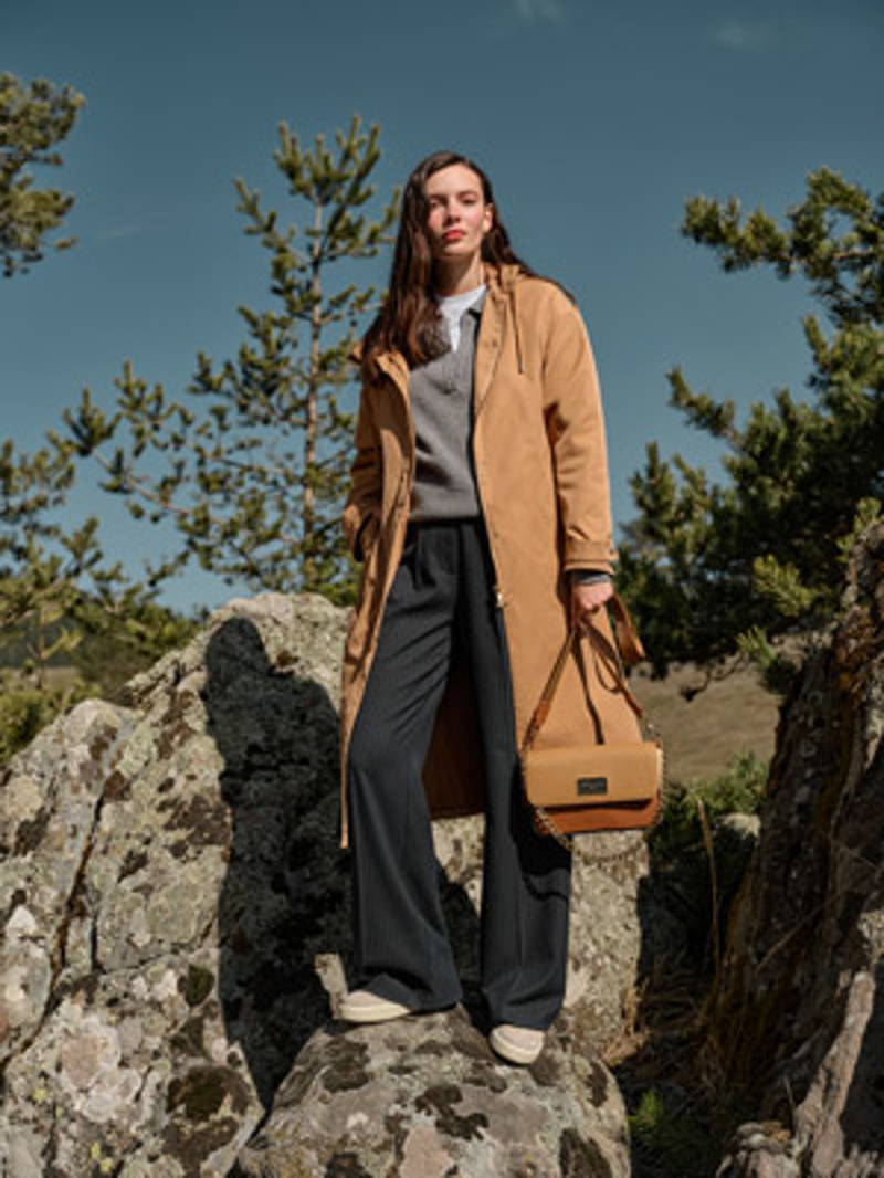 Aksesuarlarla kombininize son dokunuşları yapabilirsiniz. Şık bir atkı, boynunuzu soğuktan korurken kıyafetlerinize göz alıcı bir detay eklemektedir. Yağmura karşı dayanıklı botlar ve su geçirmez bir çanta, tarzınızı tamamlamakla kalmayıp pratiklik de sunmaktadır. Bu detaylarla her türlü hava koşuluna hazırlıklı olurken, özgün tarzınızla dikkat çekebilirsiniz.