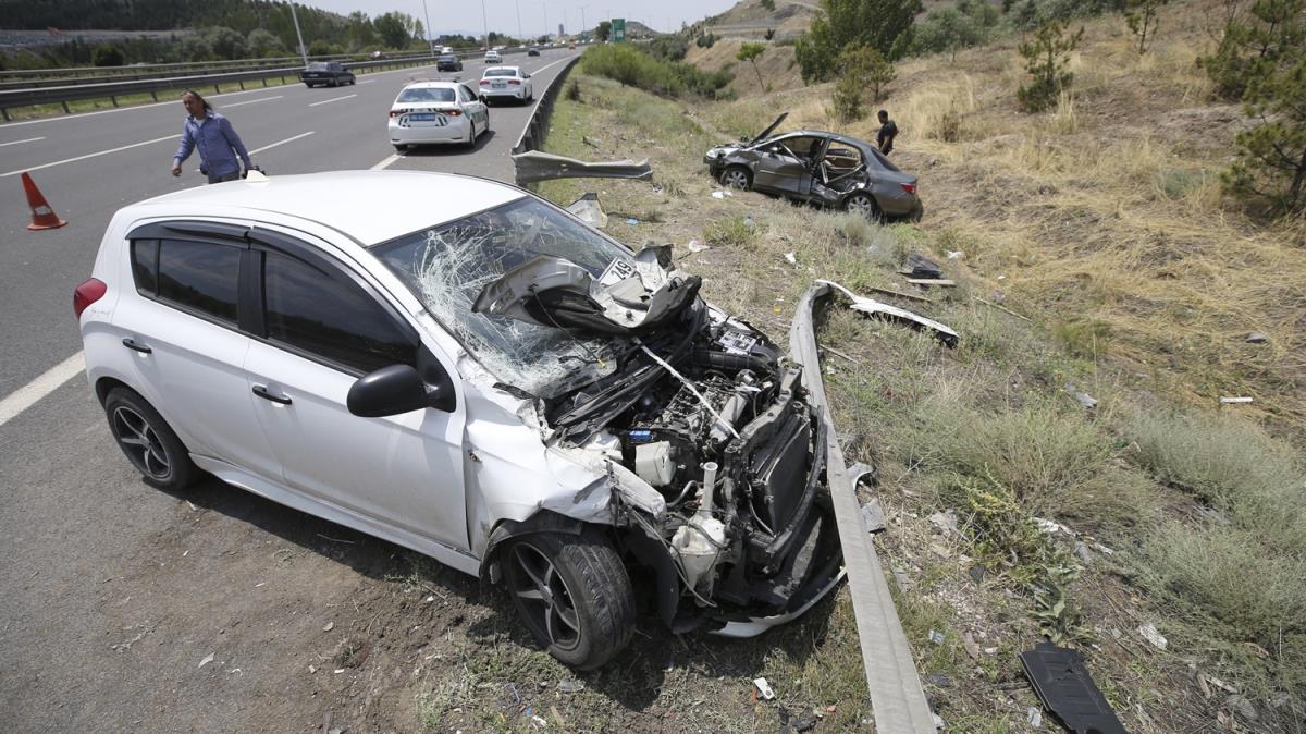 Savrulan otomobil, aynı istikamette seyreden 06 BR 249 plakalı otomobile çarparak şarampole devrildi.