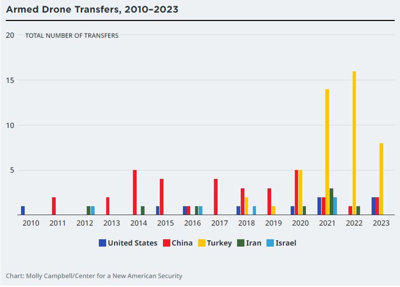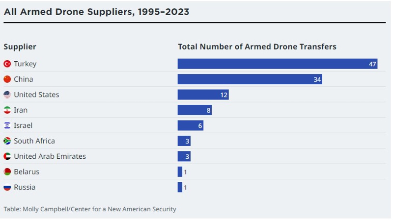 Amerikalı ulusal güvenlik ve savunma politikaları organizasyonu CNAS (Center for a New American Strategy)'ın İnsansız Hava Aracı Yayılması Veri Seti raporuna göre, 2018 yılından beri 40'tan fazla fazla ülkeye toplam 69 küresel SİHA (Silahlı İnsansız Hava Aracı) satışını gerçekleştiriyor. Ve bu pazarın %8'i ABD, %26'sı Çin %65'inin Türkiye'nin elinde.