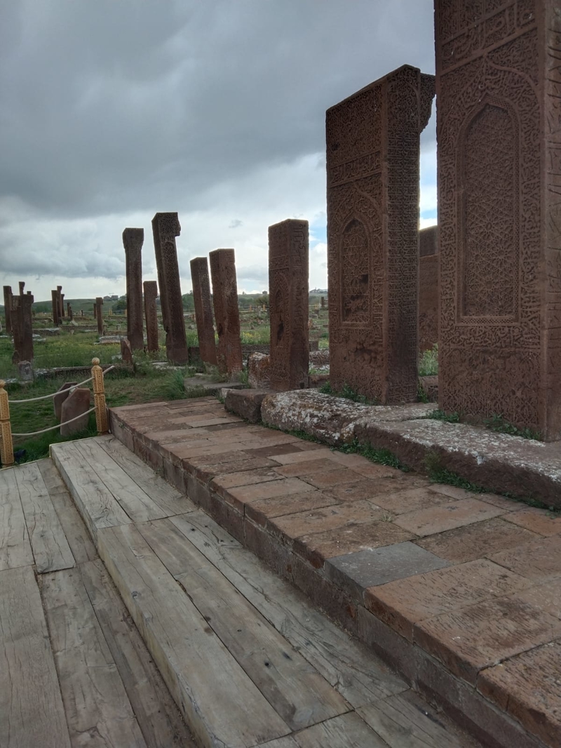 210 dönümlük bir alan. 8 bin 200 mezar taşı var ve her bir taş ayrı bir tarihe işaret ediyor. Yatay olan sanduka şeklinde mezar taşları da var yüksekliği 3,5 metreye varanı da. Dikdörtgen şeklinde her cephesinde kitabeler bulunan mezar taşlarıyla dikkat çeken bir Selçuklu mezarlığı.