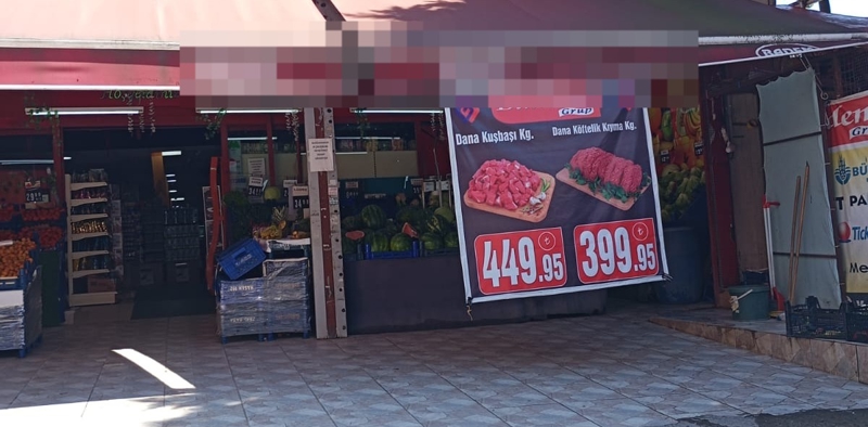Et fiyatı yazıyor. Dana kuşbaşı 450 lira, köftelik kıyma 400 lira.