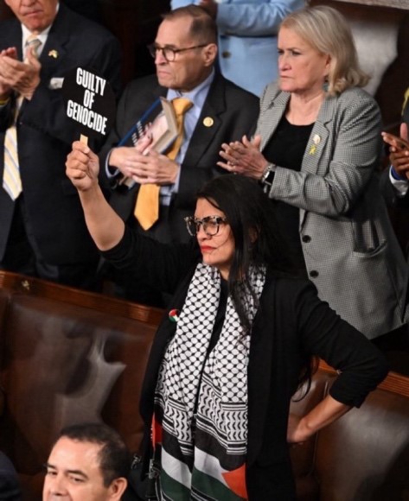 Amerika Birleşik Devletleri tarihi anlara tanıklık etti. Ama bu seferki gerçek anlamda tarih kitaplarına geçecek nitelikte aynı fotoğraftaki gibi 'kara' bir gün: Yaklaşık 10 aydır Gazze'de yaşananlar sanki hiç yaşanmamışçasına hakkında Uluslararası Ceza Mahkemesi tarafından 'savaş suçu' kararı bulunan İsrail Başbakanı Binyamin Netanyahu, Cumhuriyetçi ve Demokrat Senatörlerin ortak davetiyle dördüncü kez ABD Kongresi'nde ortak oturumda dakikalarca ayakta alkışlandığı bir konuşma yaptı.