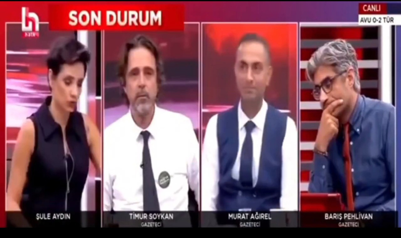 Halk TV'deki yayında Moderatör Şule Aydın'ın kulağına editörü
