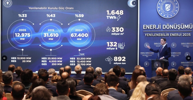 Enerji ve Tabii Kaynaklar Bakanı Alparslan Bayraktar, İstanbul'da heyecan yüklü bir sunum yaptı. Türkiye'nin 30 yılda enerji ihraç eden ülke olması, 2053'te sıfır emisyon hedefini anlattı.